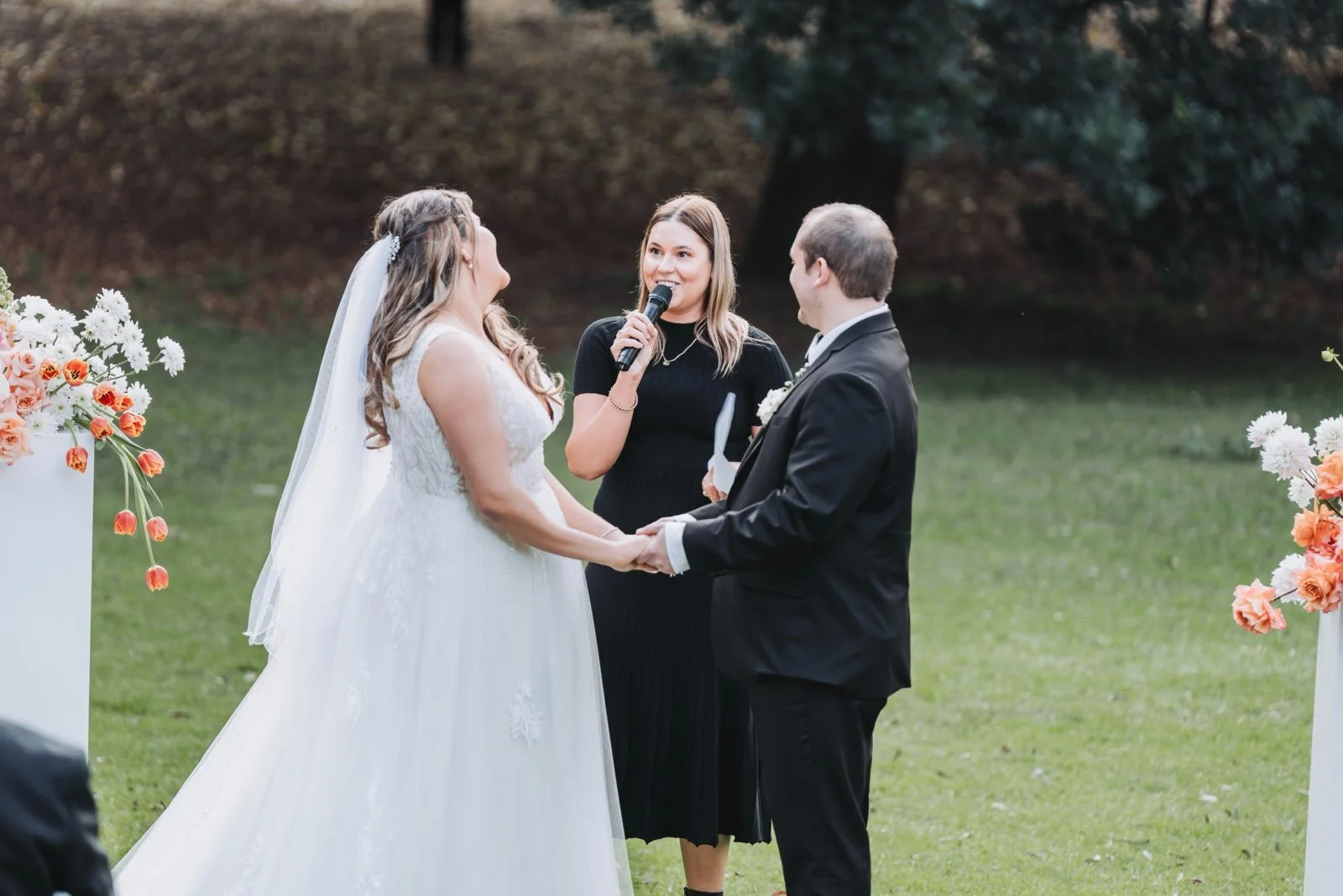 "Kat, our wedding celebrant, was absolute perfection! With her smooth delivery, thoughtful words, and relatable humour, she brought our love story to life in the most beautiful way. Her sincerity and natural ability to connect with us made the entire process stress-free and enjoyable. Kat ensured our ceremony was a true reflection of us, and we're forever grateful. We highly recommend her to anyone - she's a true professional and an absolute delight to work with!"